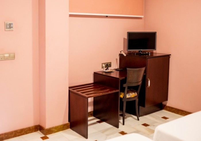 Amplia habitación tipo suite con una decoración elegante. Baño con bañera y zona de confort. Dispone de unas vistas únicas a la Plaza Porticada de Berja a través de su balcón. Rádio AM / FM Aire Condicionado WiFi Secador de Cabello